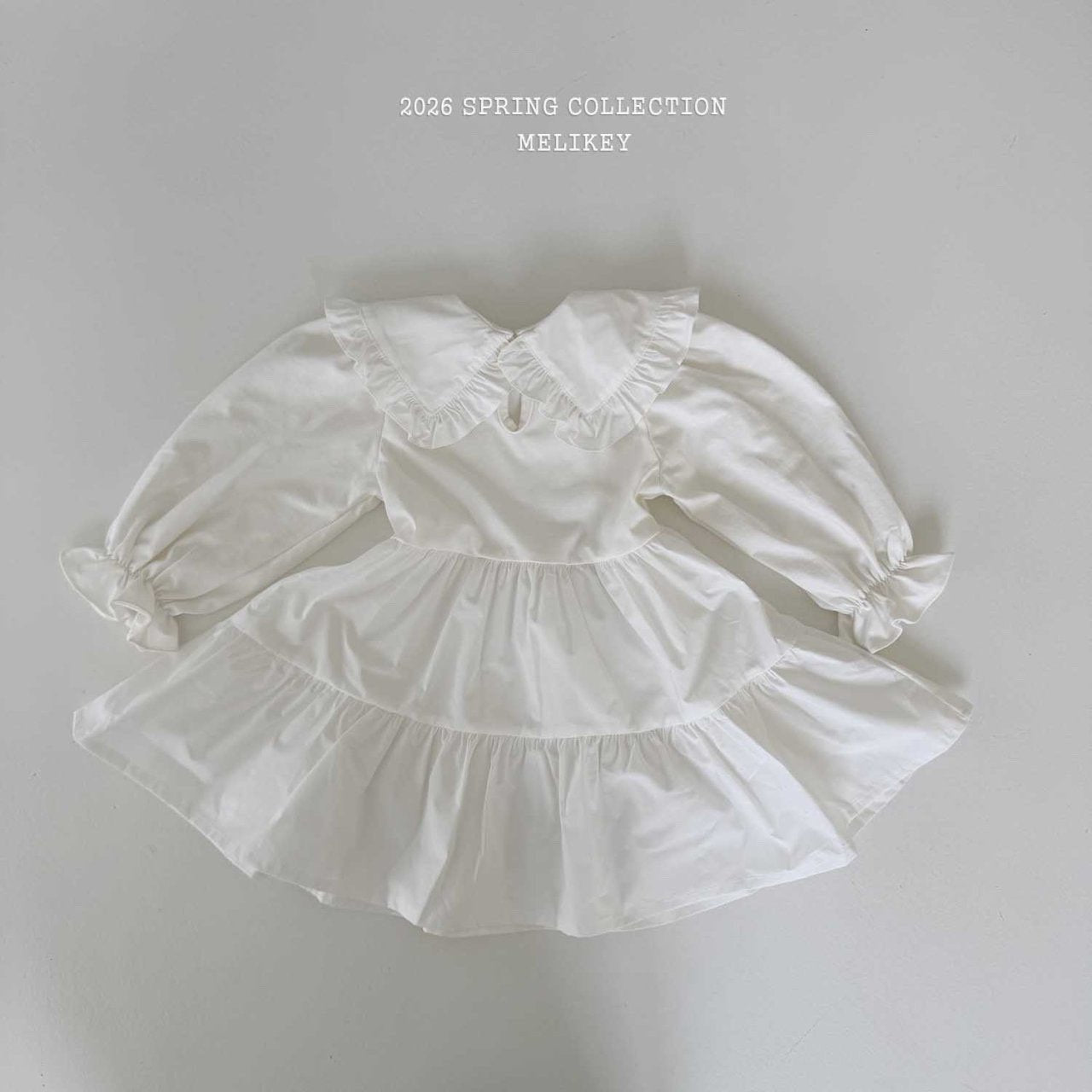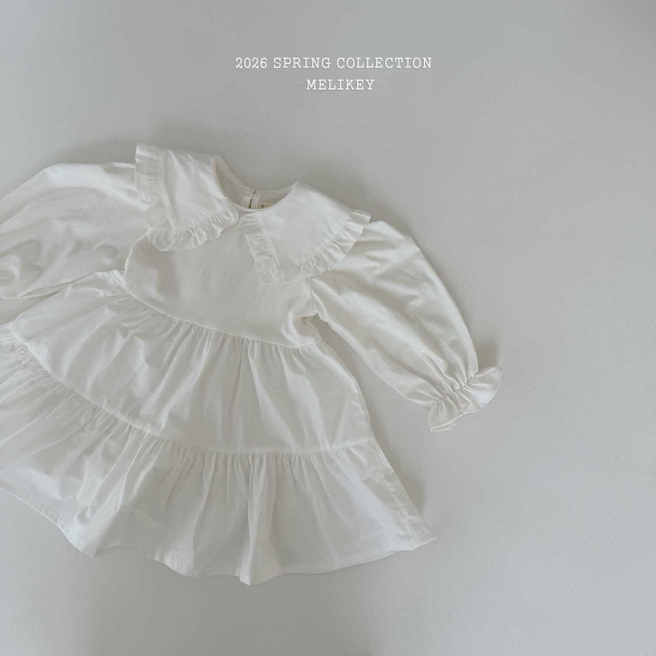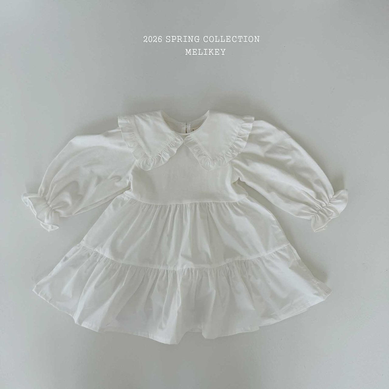 MEL KIDS 春季白色翻領洋裝**預購
